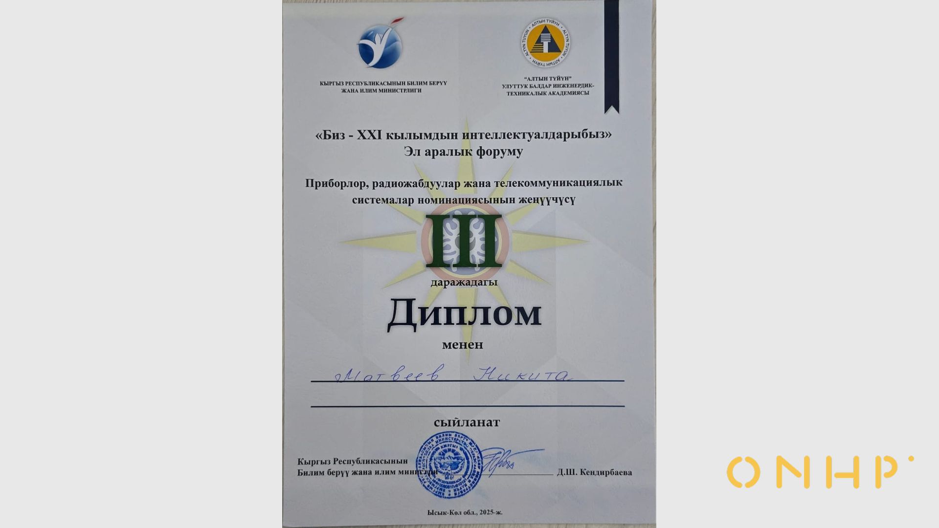 География конкурсов, в которых участвуют представители ЦЭИО ПАО «ОНХП», с каждым разом становится все шире. С 19 по 23 апреля 2025 года в городе Чок-Тал Иссык-Кульской области Кыргызской Республики прошел международный конкурс научно-исследовательских проектов обучающихся «Мы - интеллектуалы XXI века».