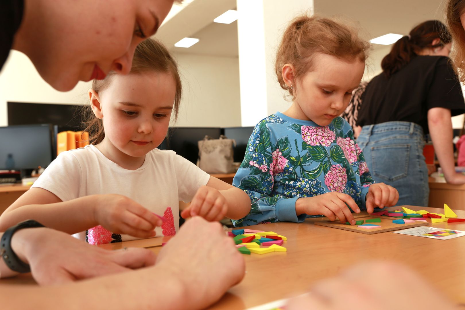 20 дошколят приняли участие сегодня в игре по станциям, на которых с помощью различных конструкторов решали логические и конструкторские задачи.