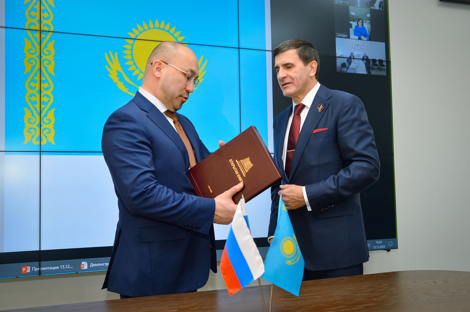 Генеральный директор ПАО «ОНХП» Зуга И.М. познакомил Абаева Д.А. с достижениями предприятия, а также представил совместный российско-казахстанский проект по формированию базовых знаний и навыков для будущих инженерных кадров Республики Казахстан. Участники данного проекта: ПАО «ОНХП» (г. Омск), ТОО VSE (г. Алматы), общеобразовательные организации, вузы РК - Казахский национальный университет имени аль-Фараби, Казахский национальный исследовательский технический университет имени К. И. Сатпаева, Казахстанско-Британский технический университет (г. Алматы).